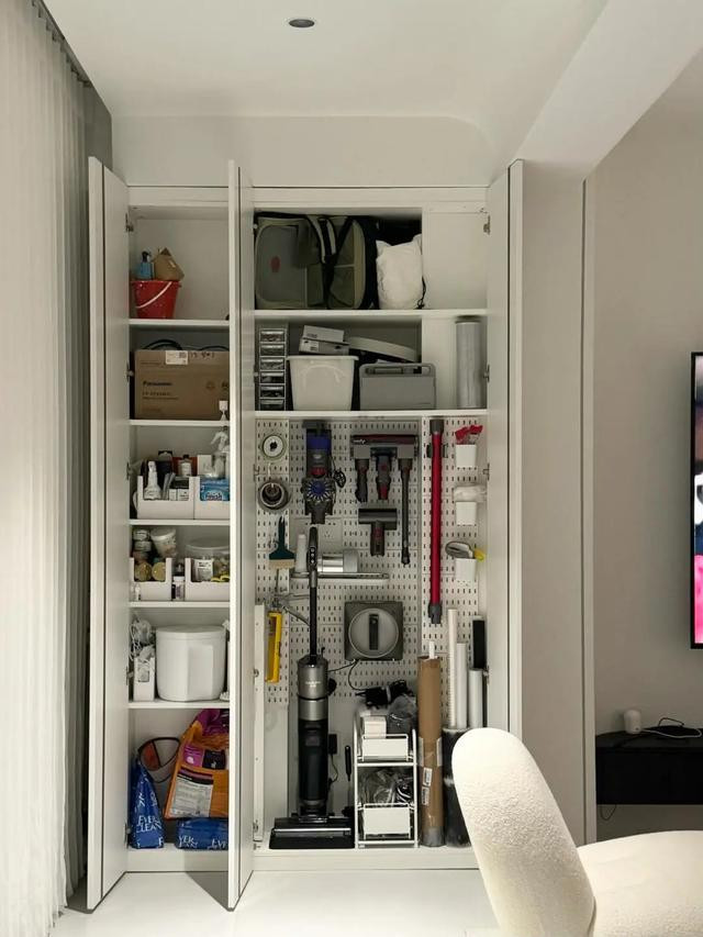 我有一位邻居,他的阳台就设计了这样一块洞洞板。每次我去他家,都能看到他的阳台整洁有序,各种物品都摆放得井井有条。真的,有了这个隐藏式收纳洞洞板,阳台再也不是那个杂乱无章的地方了。